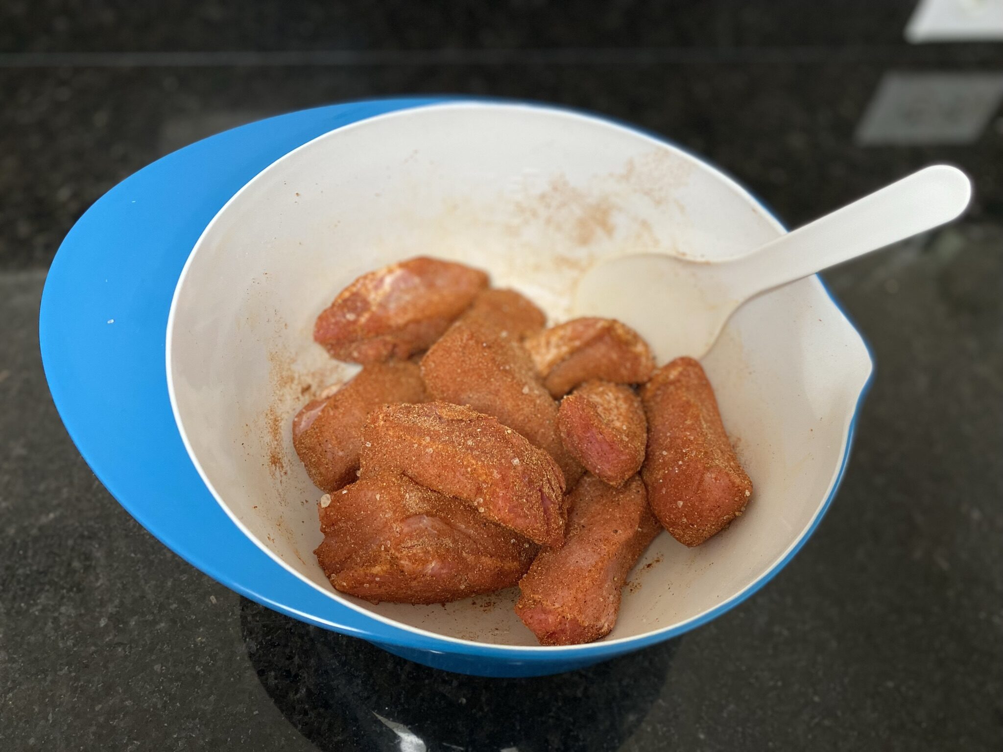 - Place the ribs in a large bowl. Add dry rub and toss to coat ribs in spice mixture. This can be done up to 24 hours in advance and placed covered in the refrigerator.